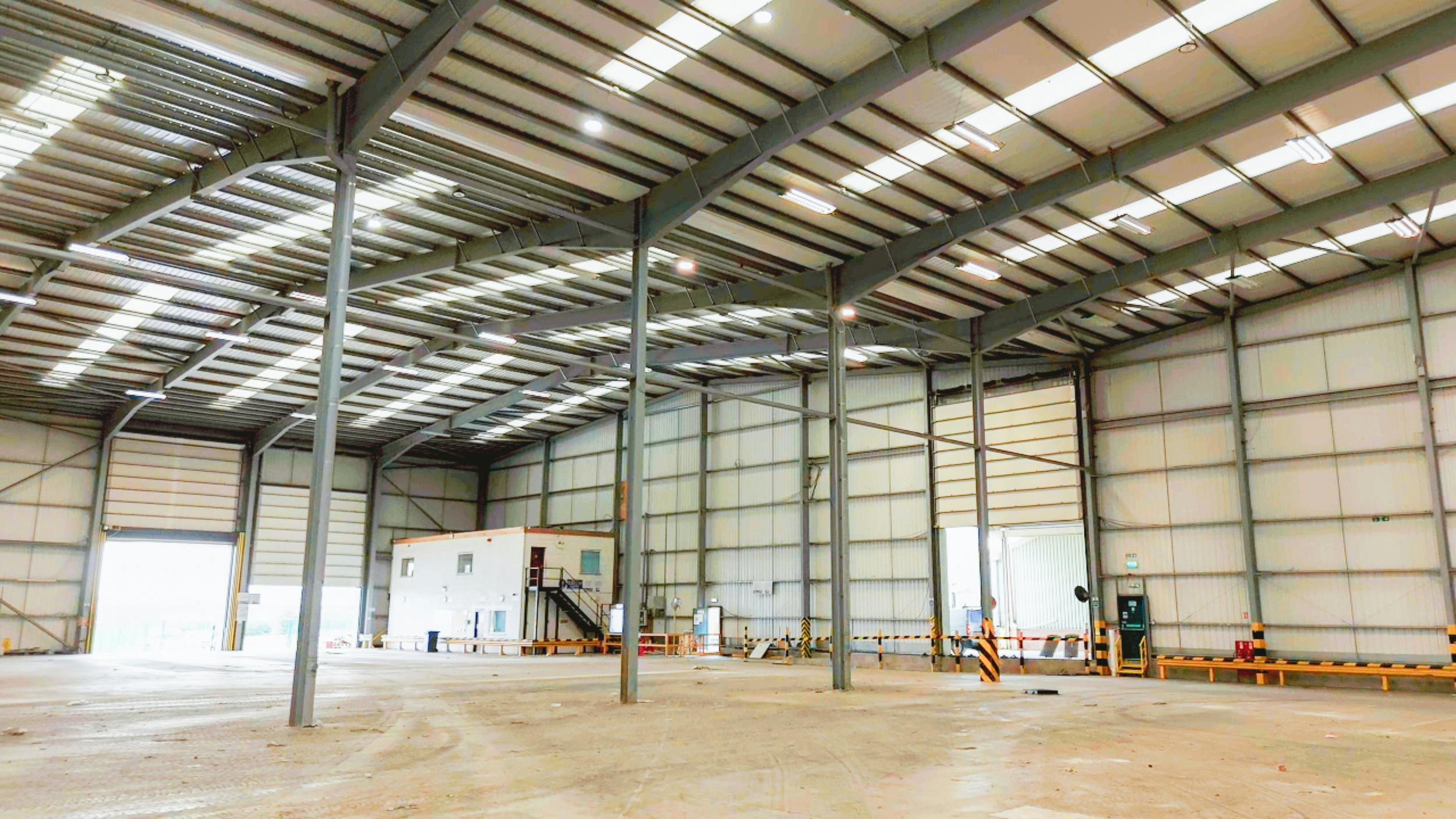 – Steel portal frame construction with insulated steel sheet cladding to the roof and elevations
