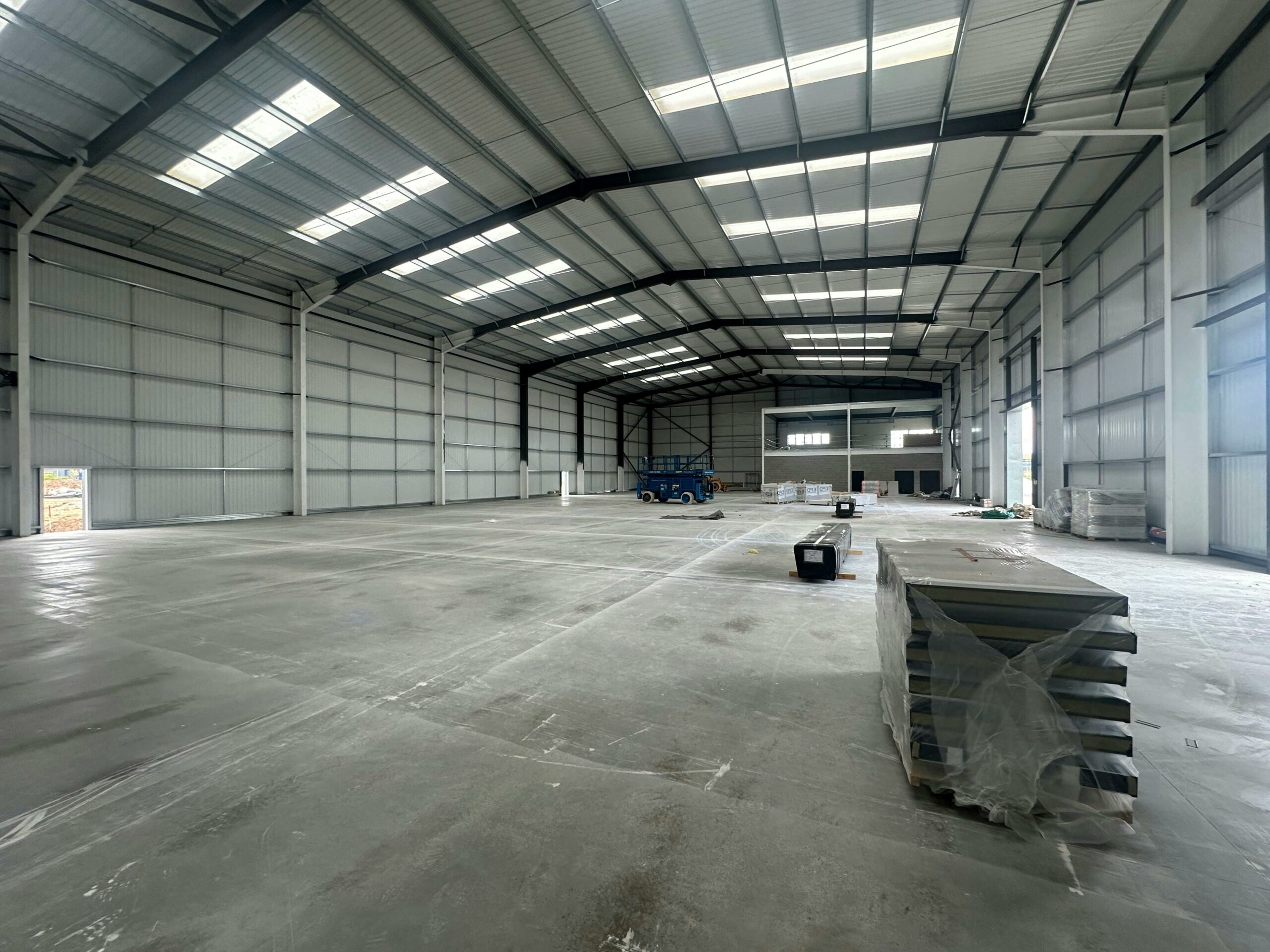 The ground floor comprises an extensive warehouse, a reception area, high-specification office fitout, and well-appointed welfare facilities.